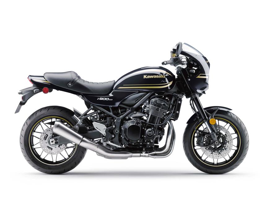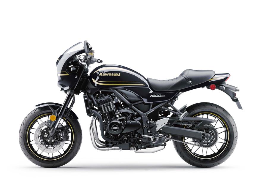 Версия Kawasaki Z900RS Cafe 2023 года изображена с той же базовой окраской Metallic Diablo Black, только теперь золотая окантовка на кожухе фары, бензобаке и хвосте подчёркивает традиции ярких расцветок мотоциклов компании Kawasaki. Золотая эмблема Kawasaki на бензобаке и золотая окантовка на колёсах подчёркивают сногсшибательный эффект.