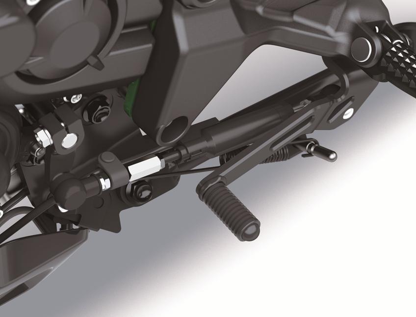 Глушитель всё ещё довольно громоздкий, но Kawasaki заявляют, что сделали всё возможное для снижения его веса. Как и ожидалось, шестиступенчатая трансмиссия типа dog-ring работает в сцепке с проскальзывающим сцеплением облегчённого выжима, снижающим тормозящий момент от двигателя и уменьшающим усталость райдера.