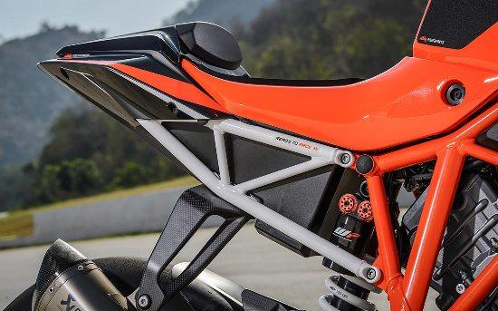 В дополнение к дорогим, но фантастическим тормозам, выпускной системе и подвеске, KTM 1290 Super Duke R был укомплектован такими приятными штуками, как задние подножки CNC с пятипозиционной регулировкой, передние крылья из углеволокна и усовершенствованные ручки управления и защитные кожухи. Пилот может удобно, а что самое главное, эффективно расположится на гоночном сиденье.