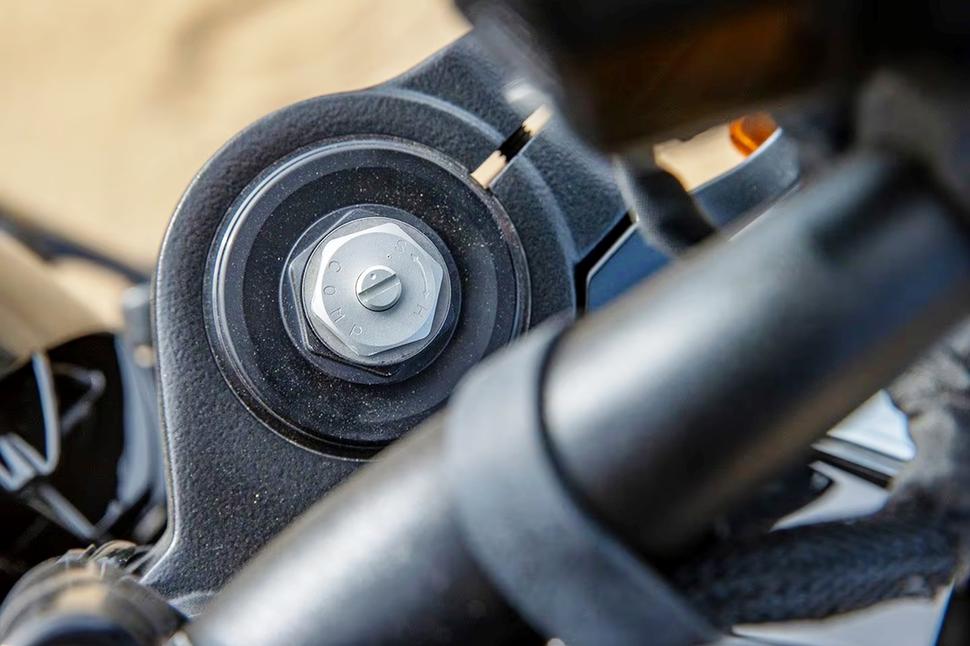 Посадка на Alpinista нейтральная и удобная, типично для нейкедов чуть с наклоном вперёд. Руль расположен удобно, положение подножек спортивное, но не слишком тесное. Круглый 4-дюймовый TFT-дисплей чёткий и яркий, навигация по меню простая и понятная. Режимы переключаются на ходу при помощи кнопки на правом пульте (ох и любят американцы его загромождать!), а трекшн-контроль легко отключается отдельной кнопкой, когда мотоцикл стоит на месте.