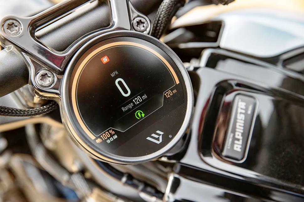 Alpinista (кстати, это итальянское слово мужского рода) основан на фирменной модульной архитектуре LiveWire Arrow System 2 с аккумулятором на 10,5кВт*ч. Четырёхдюймовый цветной TFT-дисплей даёт доступ к управлению четырьмя предустановленными режимами езды (Sport - Спортивный, Road - Дорожный, Rain - Дождевой и Range - Запас хода, он же - Экономичный или Экологичный) и ещё двумя настраиваемыми. Имеются чувствительные к наклону трекшн-контроль и ABS. Регулируемые подвески Showa и тормоза Brembo аналогичны компонентам Del Mar, а 17-е колёса позволяют Alpinista использовать огромный выбор дорожной и спортивной резины (в отличие от 19-го переднего и 17-го заднего на Mulholland и 19-дюймовых колёс Del Mar).