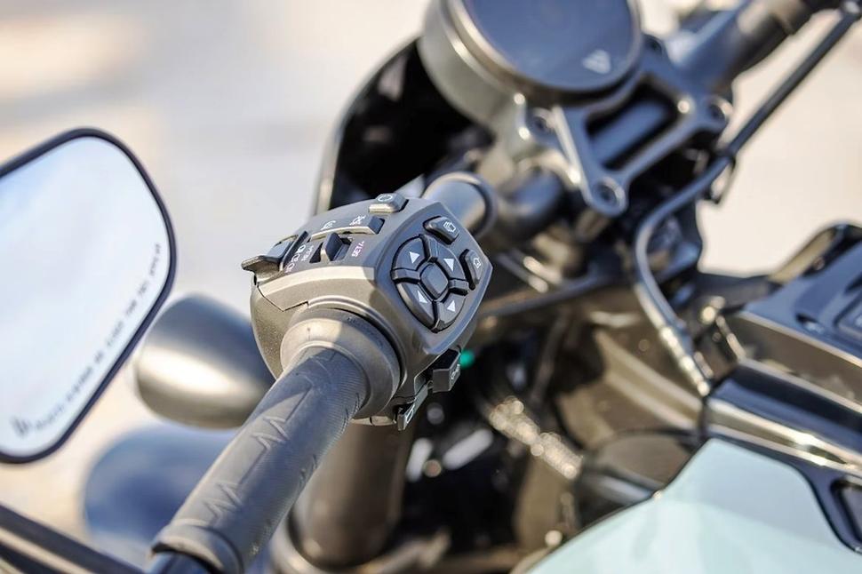 Мотоцикл оборудован подвесками Showa (с почти полным комплектом регулировок) и несколькими довольно роскошными особенностями. Полноцветная четырёхдюймовая приборная панель взята у Harley Davidson Sportster S и включает пошаговую навигацию, управление музыкой, плюс два полностью настраиваемых режима езды помимо обычных Спортивного, Дорожного, Эко и Дождевого. Плюс круиз-контроль.