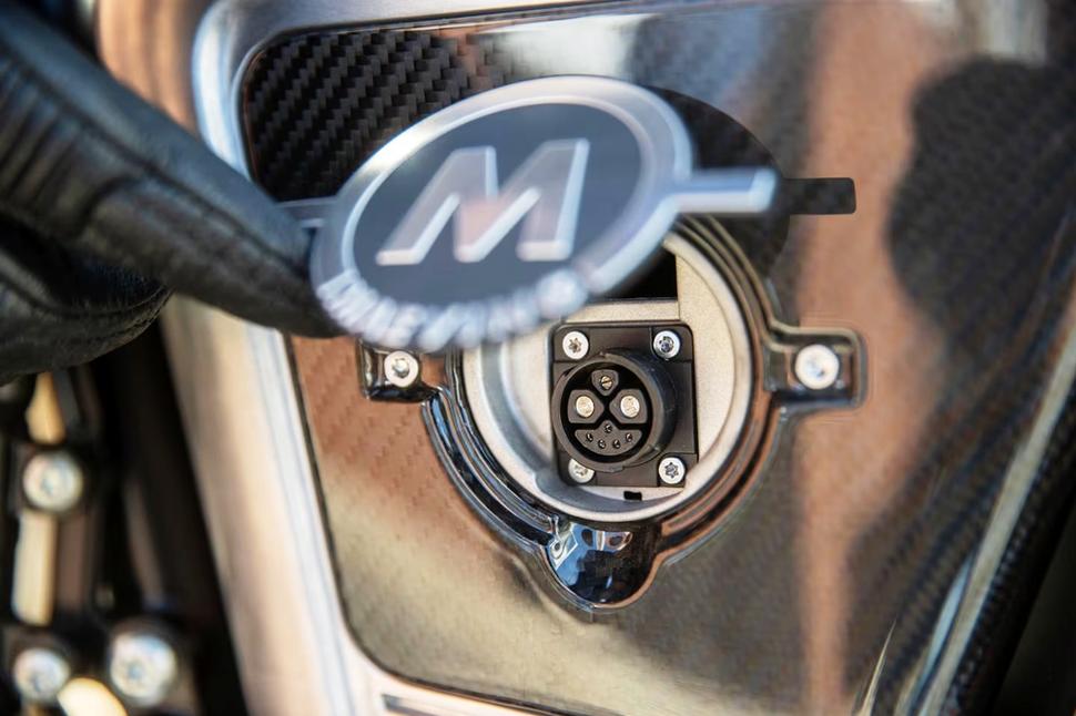 Что касается технических характеристик, то главную роль в мотоцикле Maeving RM1S играет 7-киловаттное мотор-колесо и два аккумулятора на 2,7кВт*ч каждый. Они весят по 16кг и легко снимаются для зарядки дома, в офисе или любом другом месте, где есть обычная розетка, вплоть до кофеенки где-нибудь по дороге. Правда, это нужно очень любить кофе, потому что с нуля до ста процентов аккумулятор будет заряжаться шесть с половиной часов, а с 20 до 80 процентов - за 3 часа без малого. Также мотоцикл можно зарядить через встроенный в него зарядный порт, закрытый стильной круглой крышкой с логотипом производителя.