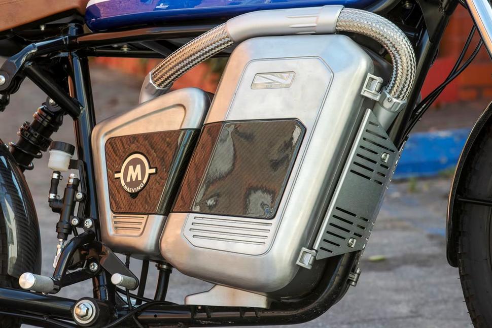 Основная часть остальной электроники Maeving RM1S, включая контроллер и 12-вольтовый аккумулятор для бортовой сети, расположены в заднем отсеке мотоцикла, а высоковольтные силовые провода проходят через большую армированную трубку, подчёркивающую его нео-ретро-вид. Здесь это во всём: ретро-решения пересекаются с современными, вплоть до комбинации диодного света и аналоговой приборной панели с маленьким ЖК-экраном. На том мотоцикле, что приехал на тест, стоят карбоновые колёсные крылья и опциональные амортизаторы K-Tech, а вот опциональной сумки с герметичным клапаном на нём установлено не было.