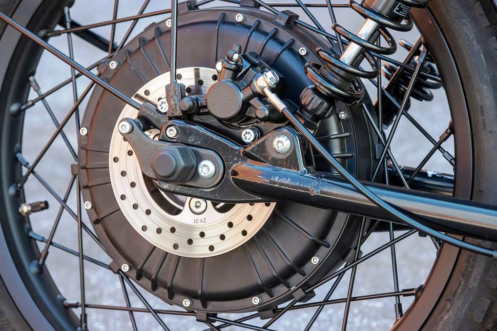 И ключевое слово здесь - "простой". RM1S состоит из стальной трубчатой рамы, нерегулируемой вилки и двух задних амортизаторов с регулировкой преднатяга внешних пружин. Узкие 19-дюймовые спицованные колёса и одиночное сиденье подсказывают, что команда дизайнеров вдохновлялась старыми мотоциклами для гонок по наклонному овалу, так называемыми борд-трекерами. А вертикальная посадка, небольшой (10 литров) багажный отсек и несколько режимов езды делают мотоцикл удобнее в городских условиях.