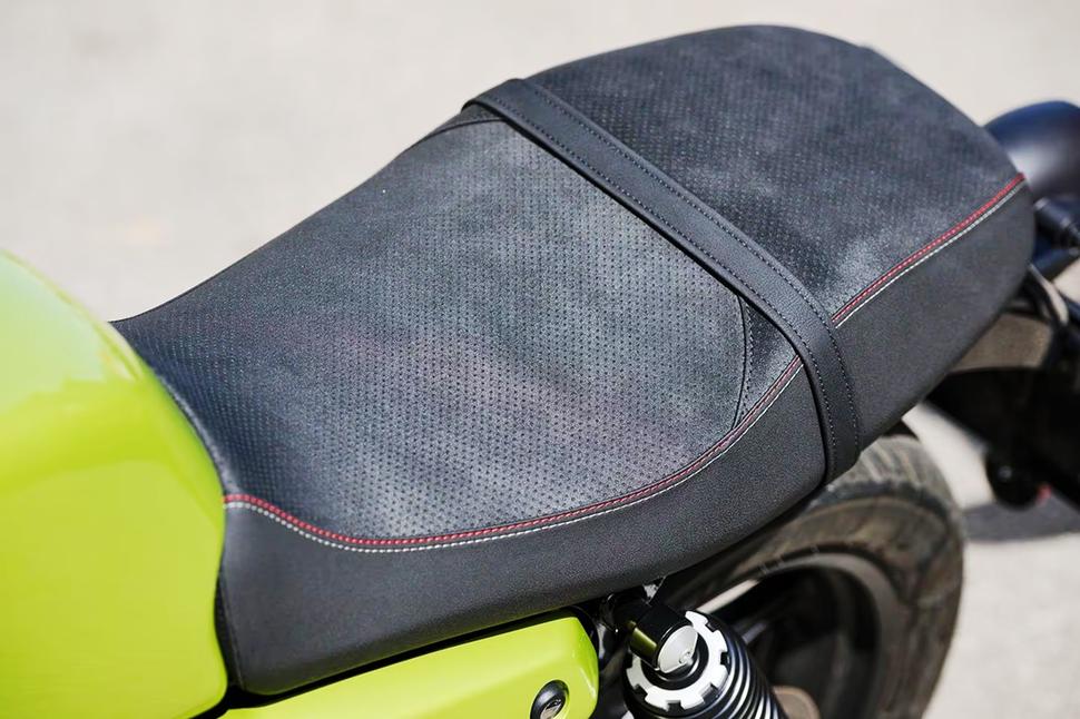 Каждая модель V7 имеет свою посадку, и на Sport всё начинается с седла высотой 78см. Шасси чрезвычайно узкое, так что этот мотоцикл отлично подходит для невысоких. Сама посадка нейтральная, с непринуждённым доступом ко всем органам управления. В плане габаритов V7 заигрывает с идеей оказаться слишком компактным, но при этом посадка одновременно плотная и удобная - это видно на фото, при росте 175см вполне нормально, не тесно. Более высокие, наверное, тоже втиснутся, седло позволяет немного сдвинуться вперёд-назад.