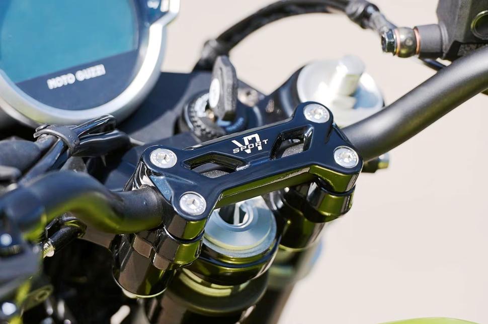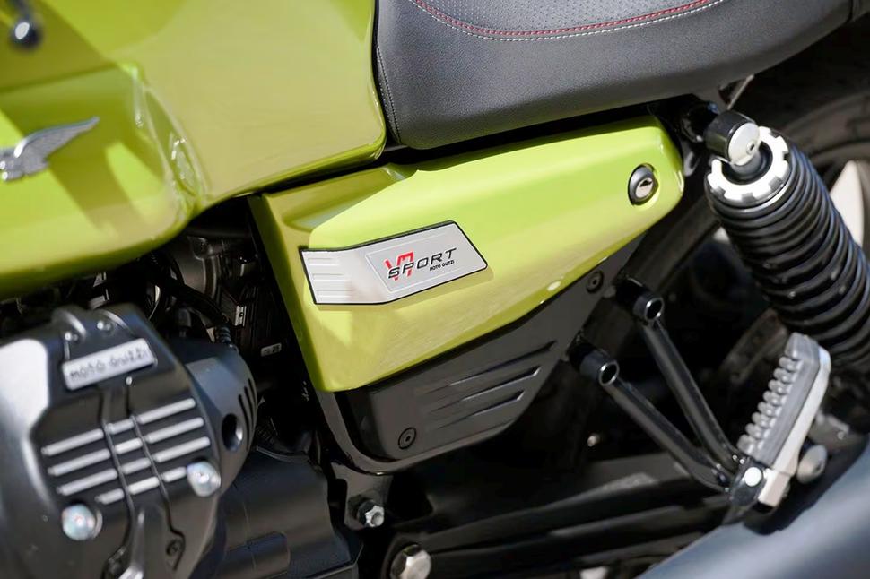 Настоящим флагманом линейки модель V7 Sport делают шасси и подвески. Вместо обычной вилки, как на Stone и Special, на Sport стоит 41-й перевёртыш. Сзади установлены два амортизатора, и преднатяг пружин настраивается на обеих подвесках.