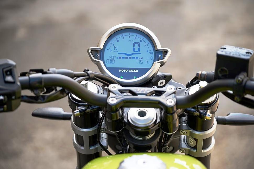 В дизайне Moto Guzzi V7 Sport 2026 множество отсылок к ретро, и в большинстве случаев это выглядит шикарно. Вплоть до обновлённых боковых крышек, красной отстрочки седла, диодной фары с силуэтом орла и отделки в целом. Но есть один момент, в котором ретро было применено в самом плохом смысле. Это - ЖК-шная приборная панель. Конечно, спасибо за шкалу уровня топлива (наконец-то), но на шкале вариантов дизайна между традиционным полностью аналоговым спидометром и современным TFT-дисплеем ЖК-экран выглядит неловкой подростковой стадией дисплейных технологий - он не изящен, не удобен и не стилен. ЖК нужно запретить совсем, или уж хотя бы не ставить на красивые мотоциклы.