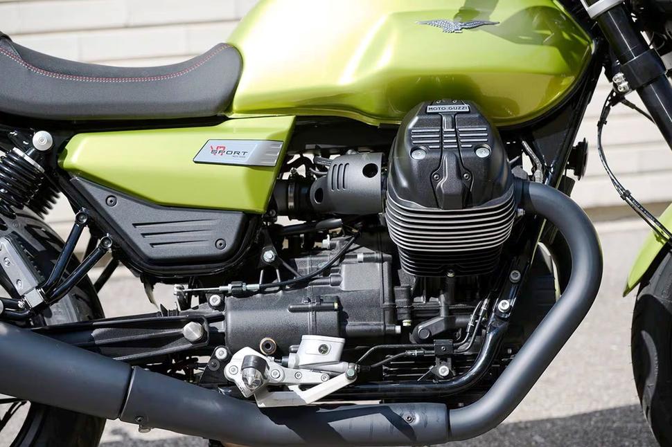 Несмотря даже на чересчур компактную посадку (но об этом чуть позже). Двигатель по-прежнему имеет два клапана на цилиндр и штанги-толкатели, точно по заветам предков. Но он тщательно обновлён, хоть и не потерял ни грамма своего очарования: он набирает обороты спокойно, хладнокровно и собранно - по-джентельменски, одним словом. Инерция коленвала тянет мотоцикл вправо, когда откручиваешь со светофора, и это тоже (как и штанги) роднит V-твин Гуцци с оппозитами BMW.