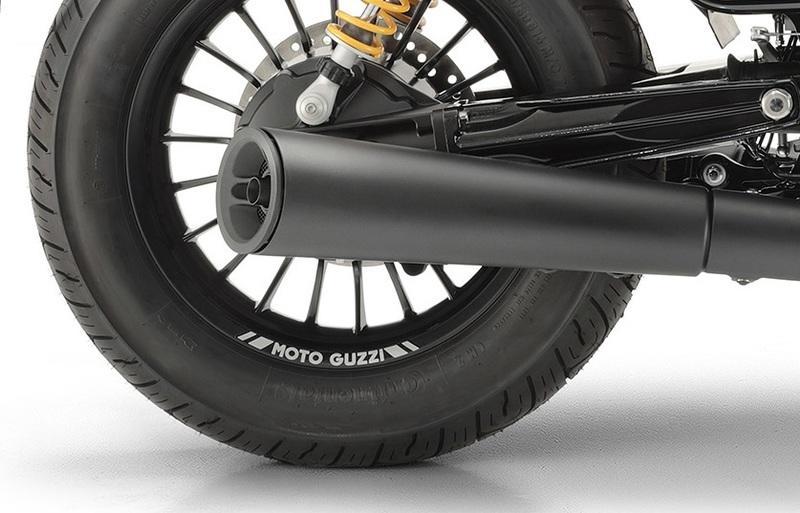 Традиционное воздушное охлаждение и 2 клапана на цилиндр остались в этом двигателе, но сюда был добавлен масляный радиатор. Инжектор от Marelli имеет единственный дроссель на оба цилиндра. На холостых, как и все двигатели Moto Guzzi, он приятно потряхивает попеременно левым и правым цилиндром, а когда обороты выходят в рабочий диапазон, вибрация исчезает. Два скошенных чёрных матовых глушителя выдают приятный звук и содержат трёхходовой каталитический конвертер и два лямбда-зонда.