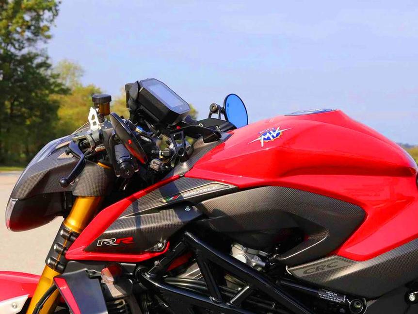 Для этого испольтзованы активные компоненты подвесок Öhlins с цифровым управлением сглаживанием сжатия и отбоя, тормозная система Brembo оснащена ABS Bosch 9 Plus, имеющим Гоночный режим. Великолепный 5-дюймовый TFT-дисплей, сердце бортовой электроники, отображает цифровую приборную панель и обеспечивает доступ к различным настройкам, позволяющим отрегулировать мотоцикл под собственные предпочтения. Кнопки управления расположены на левом пульте, а для развлечений к дисплею можно подключить смартфон по Bluetooth. В стоковой комплектации мотоцикл оснащается активным круиз контролем, а при помощи приложения MV Ride на смартфоне настройка цифровых функций (включая трекшн-контроль и режимы ABS) выполняется намного проще. И, наконец, новый дисплей обеспечивает также отображение навигации.