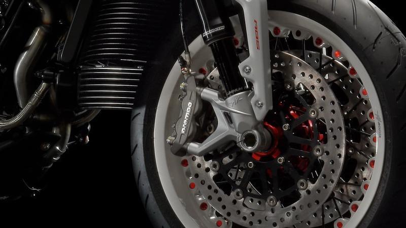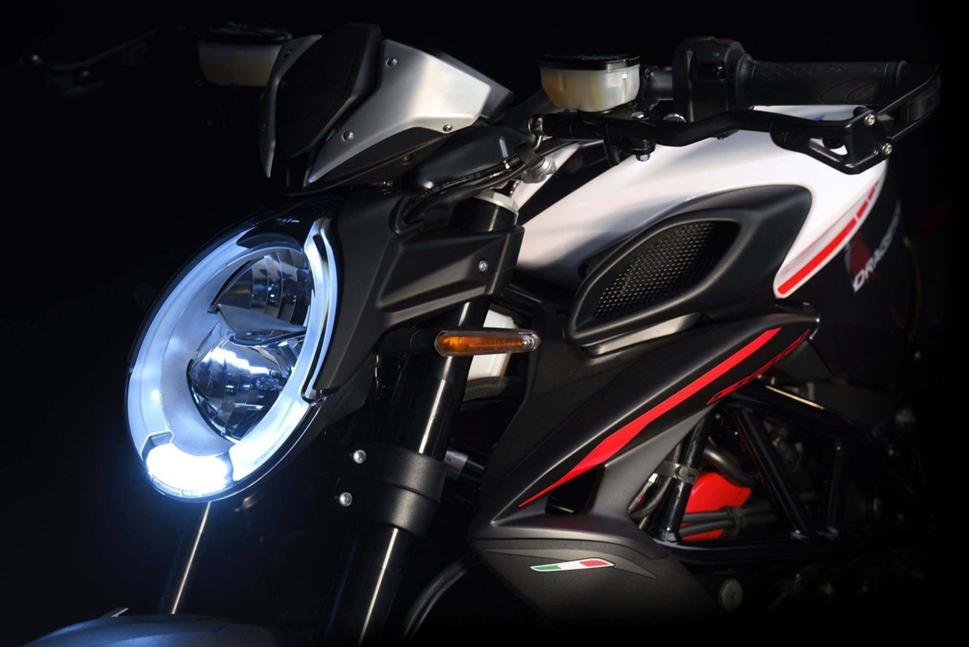 Интерфейс мотоцикла, представленный жидко-кристаллическим экраном и индикаторами приборной панели (они же помогают управлять Встроенной системой контроля мотора и ТС -MVICS system (Motor & Vehicle Integrated Control System), понятен на интуитивном уровне. Устройство передней светодиодной фары такое же, как и у остальных моделей линейки Brutale 2018 года за исключением корпуса из алюминия, который был выкрашен в черный цвет. Ступицы выкрашены в белый цвет, а концы спиц в красный, что вместе дает впечатляющий контраст с остальной цветовой схемой байка (жемчужно-белый и темно-серый цвета). А цветовая схема из светло-серого и темно-серого получила желтые акценты: панели кузова и ступицы (колесные диски при этом выкрашены в глубокий черный цвет). Рамка номерного знака и светодиодные указатели поворотов представляют собой единый элемент.