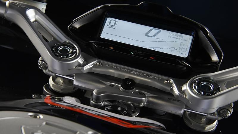 У этого MV Agusta Brutale Dragster 800RR не один и даже не два режима езды, а целых четыре. Так что вы сможете насладиться каждым мгновением езды на мотоцикле, подобрав нужный отклик двигателя, чувствительность дроссельной заслонки, степень торможения двигателем, управление крутящим моментом и так далее. Мотоцикл MV Agusta Brutale Dragster 800RR под завязку набит высококлассными электронными системами и вспомогательными системами, которые были улучшены в 2018 году. Например, встроенная система контроля мотором и ТС теперь предлагает несколько графиков работы двигателя и улучшенную 8-уровненвую систему трекшн-контроля.