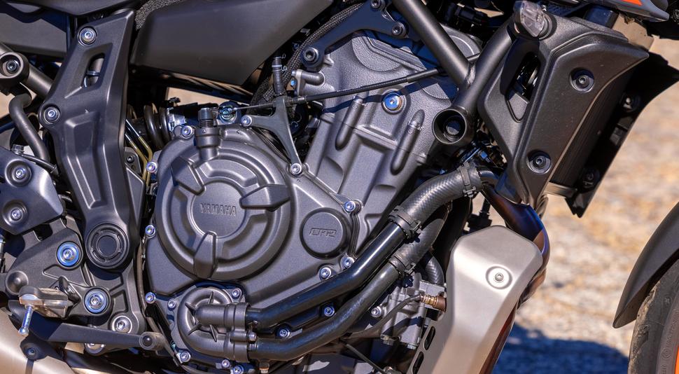 Даже с великолепным двигателем и отличной эргономикой Yamaha MT-07 2021 - третье место. Его двухцилиндровый рядник - безусловно шикарный, тяговитый по всему диапазону оборотов, в любой момент способный рвануть так, что зубы лязгнут.