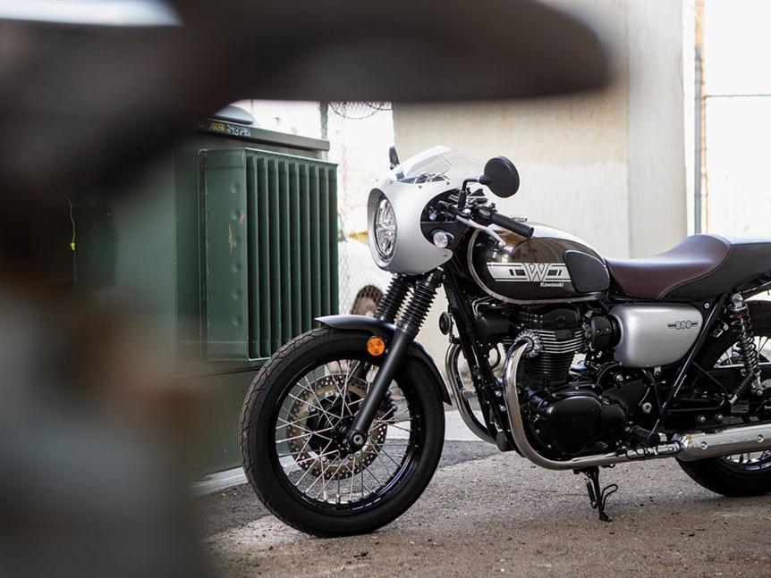 Британские корни Kawasaki менее очевидны. В 1964 Kawasaki поглотила компанию Meguro Motorcycles, у которой с 1953 была лицензия на производство 500-кубовых версий двигателя BSA A-7, названных K Stamina. В 1966 Kawasaki выпустила 624-кубовый W1, основанный на K Stamina и конструкции BSA A-7. В 1999 модель Kawasaki W650 появилась как дань уважения W1, причём для пущей ретровости они сделали в этом двигателе коническую передачу в приводе верхнего распредвала. Модель продавалась в США только в 2000-01 годах, а для других рынков производство продолжалось до 2007 года. Kawasaki W800, основанный на 650, появился в 2011 году, но в США его не поставляли. И, наконец, в 2019 году Kawasaki W800 Café появился на североамериканском рынке.