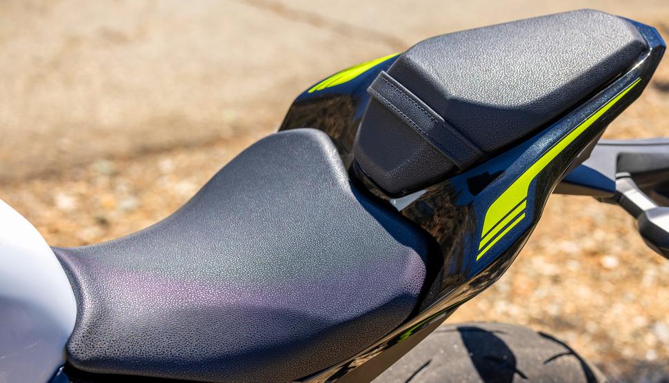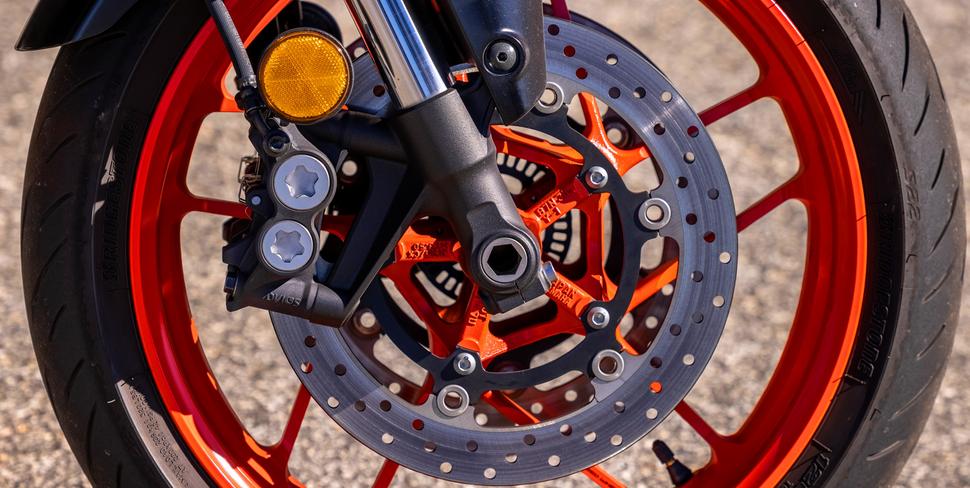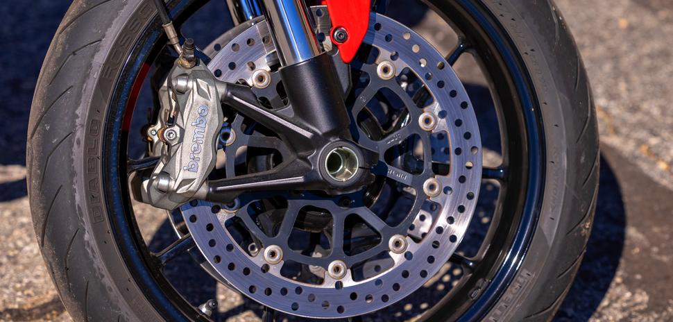 Он великолепно выглядит, у него вертикальная посадка и мягкое сиденье, отлично рулится. Оба тормоза имеют чуть больший ход, чем хотелось бы, но тормозное усилие развивают отличное. К тому же, он отлично прёт на средних оборотах. Шикарный набор электроники на основе устройства измерения инерции, всё настраивается, даже вилли-контроль. И есть даже лаунч-контроль, хоть и непонятно, зачем.