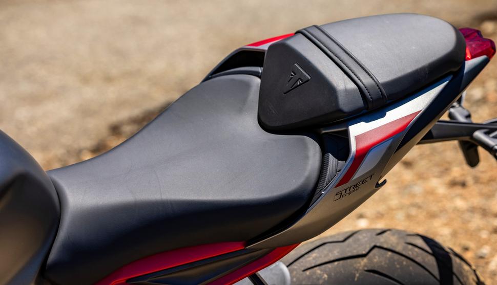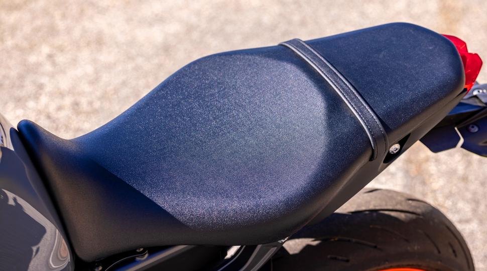 Сиденье жестковато, но посадка на удивление удобная для такого динамичного мотоцикла. Навигация по страницам меню TFT-приборки достаточно удобна, а вот изменение настроек (или даже сброс трипметра) не слишком интуитивны.