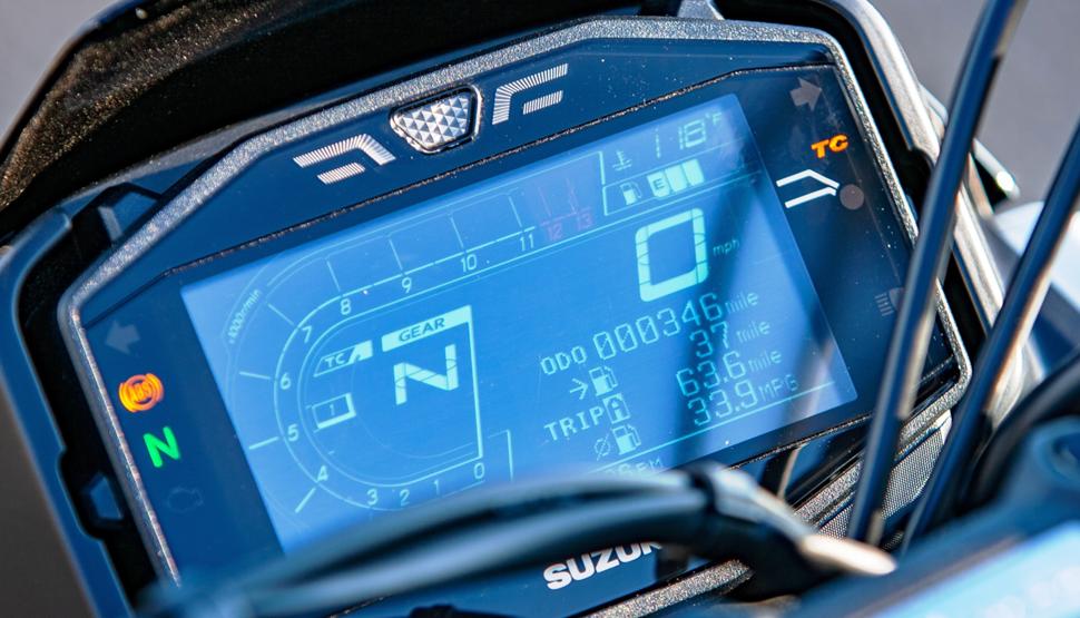 Причём когда смотришь на него со стороны - и не догадаешься, что это новый мотоцикл. Даже его приборка выглядит именно так, как должна - две пули с круглыми приборами, спидометром и тахометром. А уже между ними притаилось незаметное со стороны лаконичное цифровое табло со всей остальной информацией. Приборка Katana тоже неплоха, но несколько избыточна. Посмотришь на такую в поисках часов - и заблудишься взглядом.