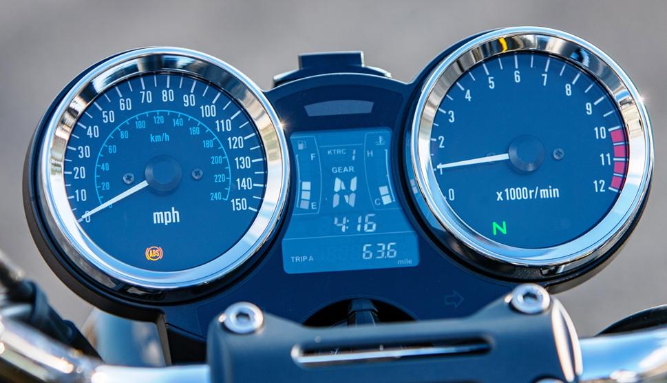 Да, можно отлично покататься на любом из этих мотоциклов, не раскручивая выше 7000, но скинув передачу на превосходной шестиступке Suzuki Katana, ты получаешь доступ к такому космическому ускорению 138-лошадного мотора, которого 97-лошадный Kawasaki Z900RS никак не способен выдать.