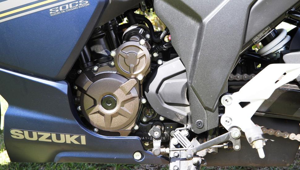 Иногда это происходит на ускорении и порой приводит к ложным нейтралям. В плане динамики Джиксер не совсем годится для трассы без камер и ограничений, но для получасовых перегонов вполне подойдёт. Длительные же поездки на высоких оборотах могут вызывать проблемы с двигателем. В целом маленькая 250-ка с тяжёлым маховиком тяговита и приятна - не самый быстрый мотор, но очень практичный.