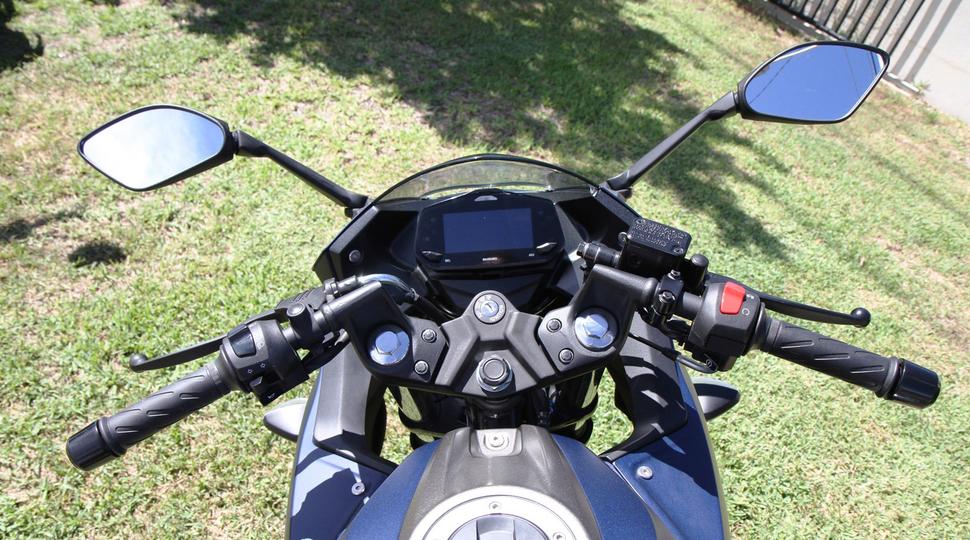 А главное - прекрасная управляемость на фоне лёгкости, так что они позволяют и успешно учиться управлению, и получать массу удовольствия от динамичной езды. Конечно, даже капотированная модель SF - это не спортбайк, так что давайте называть его просто "спортивная версия". Он оснащён полным обтекателем, ветровым стеклом и клипонами, которые, к слову, имеют ровно ту же высоту, что и руль нейкед-версии.