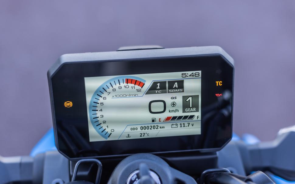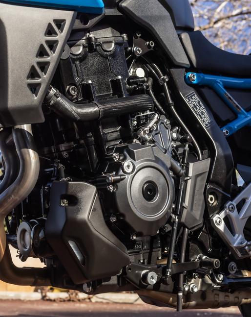 Основные свои достоинства новый мотор Suzuki проявляет на низких и средних оборотах. Причём, что интересно, характер двигателя (а значит, и карты ЭБУ) у GSX-8S отличаются от V-Strom 800 DE на таком же моторе. По словам представителей Suzuki, карты отличаются незначительно, но по факту 8S кажется ощутимо тяговитее V-Strom, и кажется, что нейкед вполне способен исполнять неплохие вилли в умелых руках. На средних оборотах есть ощутимый подрыв, и в районе 7000 - ещё один, но по мере дальнейшего набора скорости вращения тяга начинает снижаться, так что заставлять его реветь в районе отсечки особо незачем.