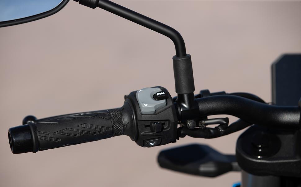 Кстати, о рёве: как и V-Strom 800, 8S оснащён горизонтальным шестилитровым аирбоксом, расположенным под седлом, а также первым в арсенале Suzuki коротким глушителем, который удерживает вес низко и по центру. Система охлаждения имеет термостат, способствующий более быстрому прогреву и стабильной температуре сгорания, что приводит к снижению содержания в выхлопе вредных веществ. Двойной балансирный вал призван подавлять нежелательные вибрации, и неплохо справляется с этой задачей до самых верхов.
