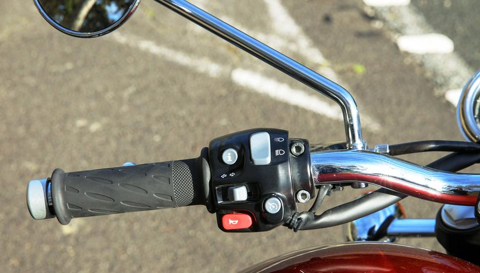 Что касается езды по трассе, то тут Triumph провернули вообще немыслимое: они установили на этот мотоцикл круиз-контроль, который при этом совершенно не нарушает общего винтажного настроя, излучаемого T120. Система работает потрясающе: она включается маленькой кнопкой на левом пульте и очень уверенно держит заданную скорость.