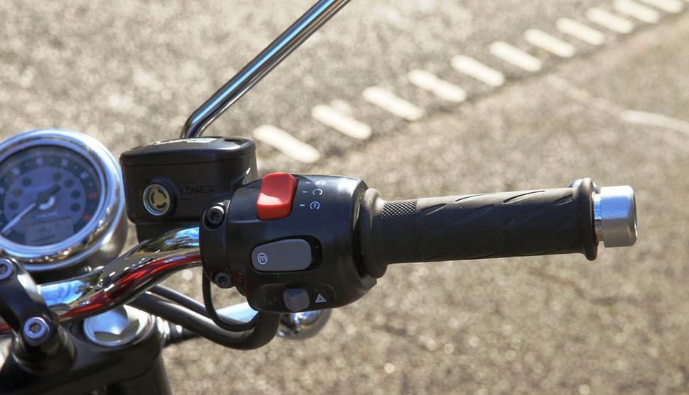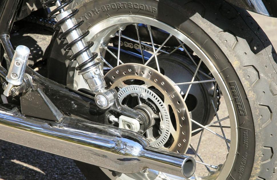 Наличие трекшн-контроля на таком мотоцикле - это просто чудесно. Это достаточно простая система, которая спасёт вашу задницу при слишком бодром старте со светофора под дождём и не даст потерять зацеп на заднем колесе в повороте, но её вмешательство достаточно очевидно и ощутимо. Мотоцикл агрессивно снижает мощность при быстром отпускании сцепления или трогании на рыхлом гравии, но в сущности для мотоцикла а-ля пятидесятые этого более чем достаточно.