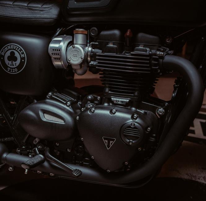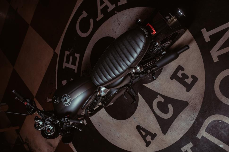 Инженеры Triumph проделали отличную работу, создав уникальный дизайн Bonneville T120 ACE с его практически полностью чёрной отделкой и эксклюзивными деталями в цвете Matt Storm Grey. Монохромная палитра придаёт ему несколько зловещий вид, но он настолько хорош в стоке, что вряд ли его хозяин захочет в нём что-то менять.