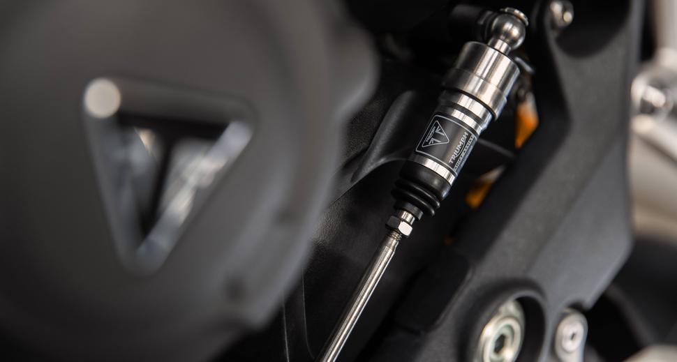 Штатный двунаправленный квикшифтер работает на новом алгоритме и использует перемещаемый датчик передачи на основе технологий Moto2. По словам Triumph, они изучили регулировки квикшифтера у нескольких команд, что позволило им отладить и без того качественную работу этой полезной функции.