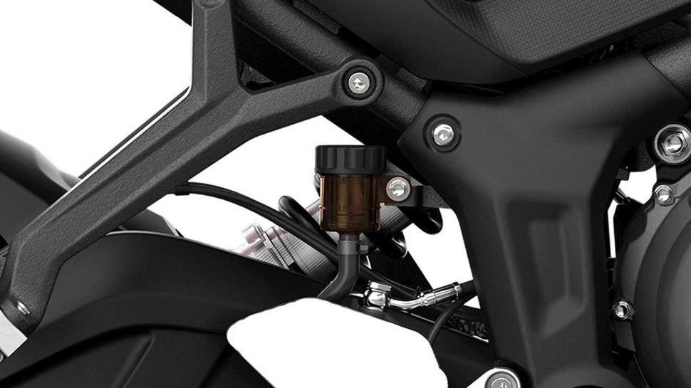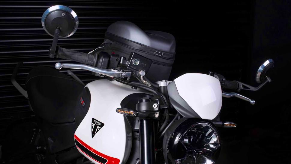 Обвес небогатый, но симпатичный: большой бак с типично британским вырезом под колени, маленькое переднее крыло, узкий хвост, пара боковых панелей - и всё. Раскрасок четыре - две базовые и две премиальные. Базовые - Crystal White с Diablo Red и чёрными наклейками, а также Sapphire Black с Diablo Red и наклейками алюминиевого цвета. Премиальные варианты двухцветные - Matte Jet Black и Silver Ice с белыми наклейками и Silver Ice и Diablo Red с чёрными наклейками, и имеют большие логотипы Triumph на баке.