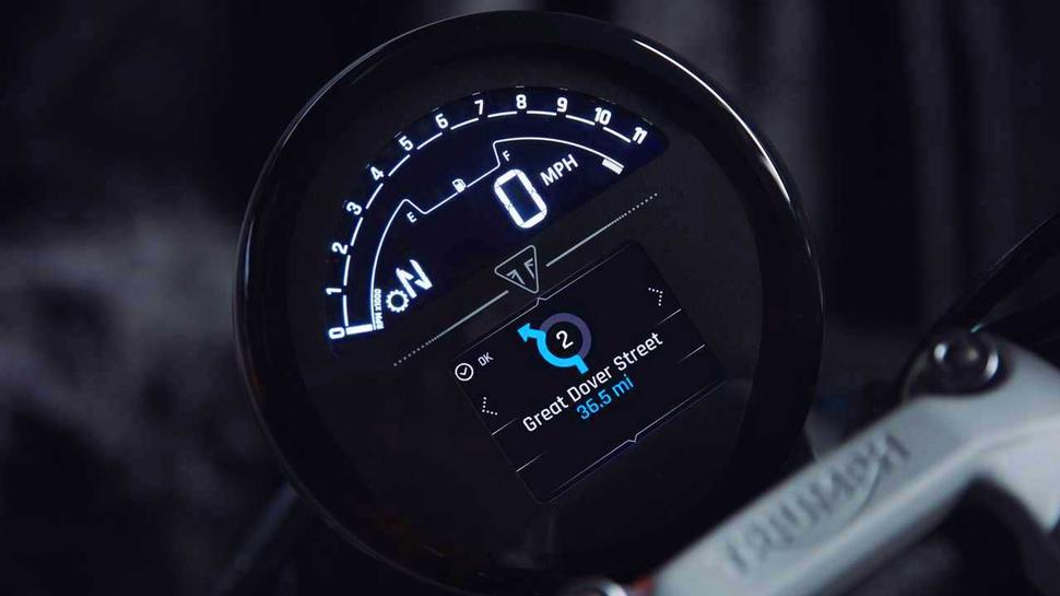 Зато Trident 660 может быть оснащён опцией My Triumph Connectivity System. MTCS с Bluetooth-модулем превращает цветную часть приборной панели в полноценную интерактивную бортовую мультимедийно-информационную систему, способную работать в паре с любым Bluetooth-устройством. В этом случае MTCS может выполнять функции навигатора (с подсказкой поворотов), управлять телефоном и музыкой с руля, и даже экшн-камерой GoPro.