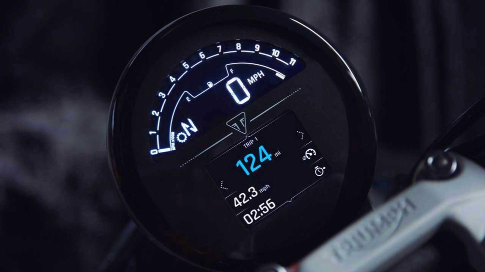 Для своего сегмента эта модель упакована весьма неплохо. Цифровая приборная панель расположена в центре руля, верхняя половина её - высококонтрастный чёрно-белый дисплей со спидометром, тахометром, индикатором передачи, шкалой уровня топлива и разными индикаторами. Ниже расположен полноцветный TFT-дисплей, отображающий подробности о работе системы, одометры, часы и меню настроек.