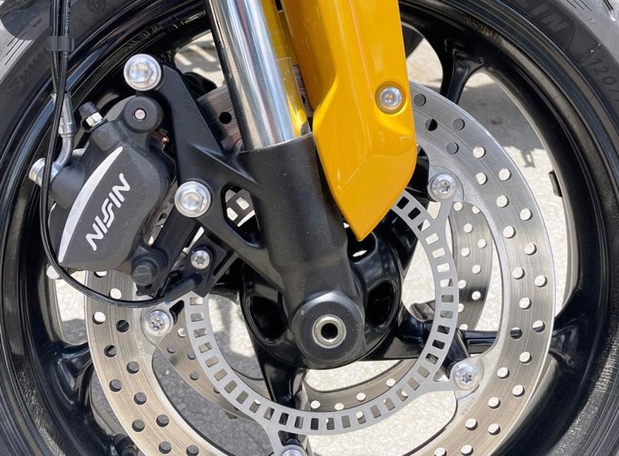Наваливая по особо узкой и извилистой дороге, покрытой мусором из-за вчерашней грозы, порой чувствуешь вмешательство ABS - и на рычаге, и на педали. Двухпоршневые Nissin-ы иногда будто выходят за пределы зоны комфорта, но большинству райдеров этого хватит за глаза.