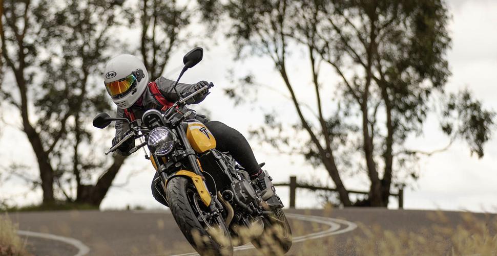 По словам техника Triumph Australia, штатное положение регулятора преднатяга - это минимальная жёсткость для одиночной езды. Вероятно, в спокойном темпе по городу это самое то, но в итоге пришлось затянуть преднатяг на пять щелчков. Так мотоцикл остался комфортным, но значительно меньше стал приседать на открытии газа при выходе из медленных поворотов.