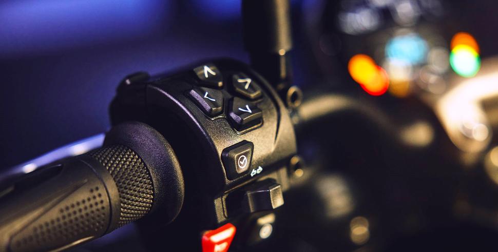 Всё это настраивается через главное меню, которое доступно только когда мотоцикл остановлен, а вот перелистывание параметров работает и на ходу. Ещё на ходу можно переключать режимы езды, делается это одной кнопкой, тоже на левом пульте.