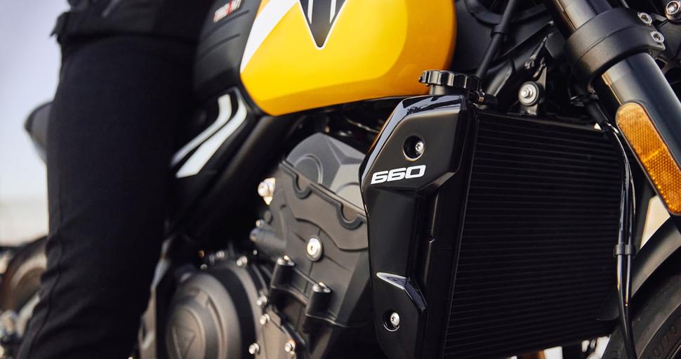 По словам Triumph, выход неурезанной версии стал шагом, основанным на отзывах как клиентов, так и дилеров, и это ставит Trident в один ряд с его капотированным собратом, Daytona 660. У которой, кстати, по продажам дела обстоят очень забавно: один полносильный экземпляр приходится на три ограниченных.