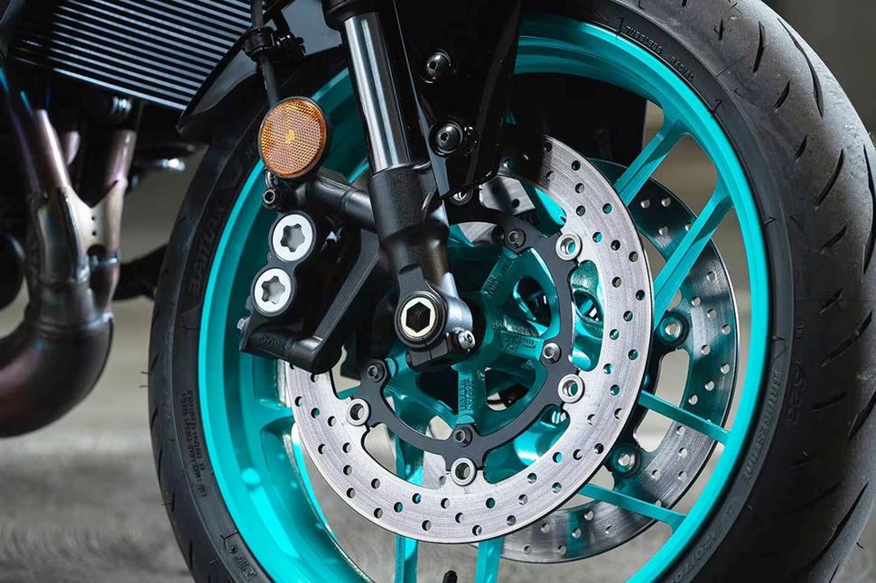 Что касается тормозов, то обновлённый радиальный главный цилиндр Brembo и два передних четырёхпоршневых суппорта вполне достаточны для MT-09. В противовес чувствительному газу, тормоза MT более мягкие, не в смысле тормозного усилия, а в плане плавности схватывания и информативности.