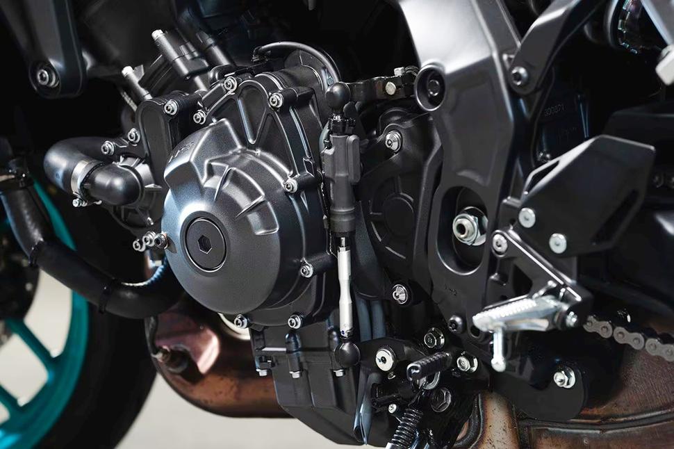 Мотор новой версии MT-09 остался без изменений с предыдущего варианта. Это 890-кубовая рядная тройка CP3 с двумя верхними распредвалами, знаменитая своим звуком и характером. Это настолько отличный мотор, что в нём просто нечего менять, в итоге Yamaha уделила внимание трансмиссии. В частности, в ней использованы семь новых шестерёнок с обновлёнными ведущими собачками для более мягкого переключения и уменьшения люфта. Ещё Yamaha MT-09 2024 года оснащён новейшим квикшифтером, работающим практически на любых оборотах и этим выгодно отличающимся от предыдущей реализации.