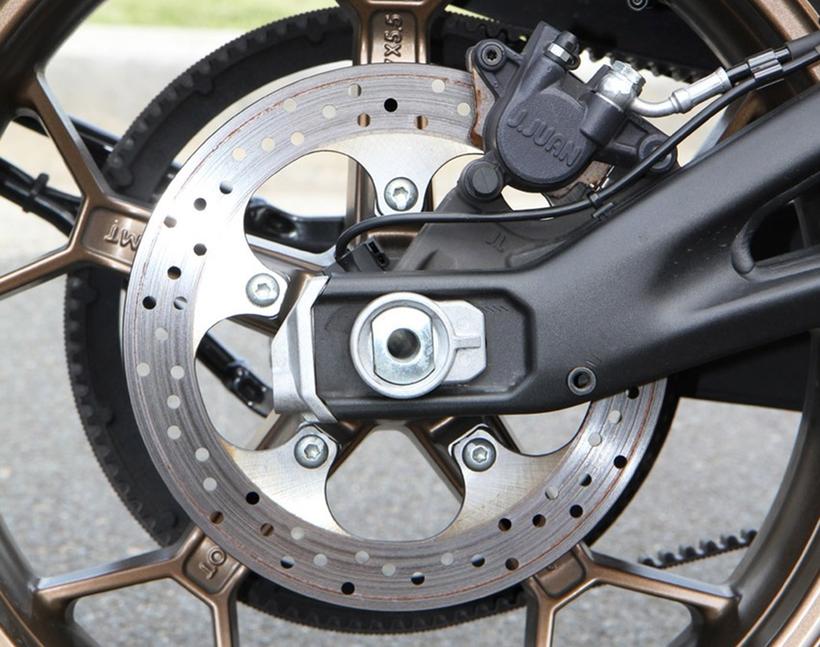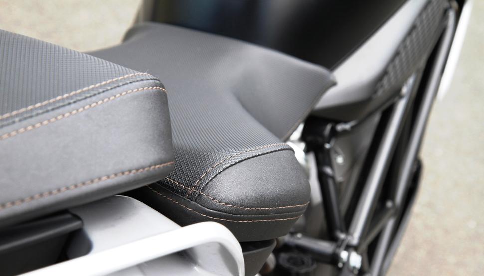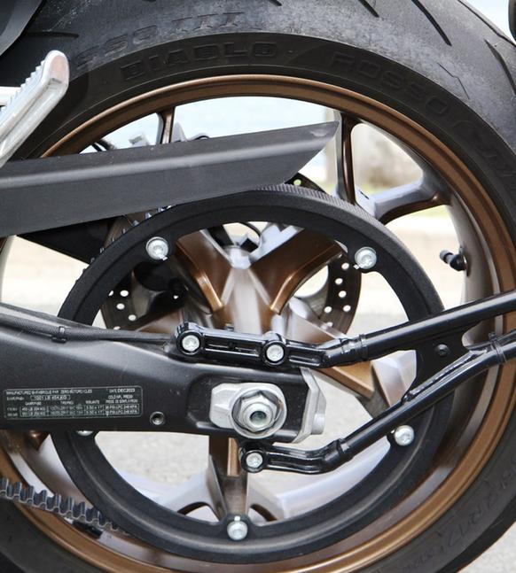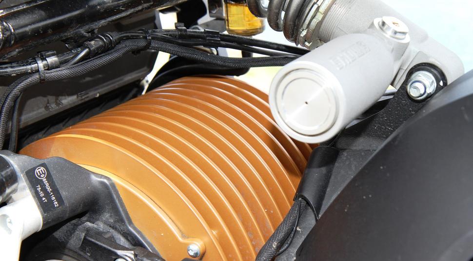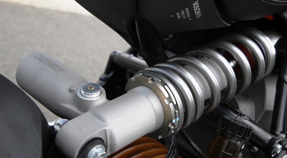 Торможение в наклоне не мешает рулению, и несмотря на недостаток обратной связи от передней шины, она явно цепко держит дорогу. Тормоз довольно аккуратно модулируется рычагом, благодаря суппортам от J.Juan и большим дискам. ABS превосходна, по крайней мере, не вмешивается, пока это не становится действительно нужно. Задний тормоз не впечатляет, не особо помогает балансировать мотоцикл. Рекуперация тут не помогает совершенно - просто нужен более мощный суппорт. Амортизатор работает неплохо, не слишком явно приседает на ускорениях, и для безрычажной подвески он весьма адекватен.