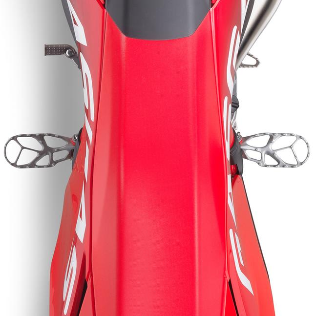 В случае подножек чем больше, тем лучше, и вот почему новые модели GasGas получили более широкие подножки для наилучшего контроля над мотоциклом. А благодаря новой системе крепления они находятся ближе друг к другу, что позволяет им меньше цепляться за края колеи или трамплины при прыжках боком.