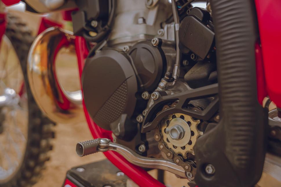 Одна из самых интересных особенностей 249-кубового двухтактного мотора GasGas MC 250 2024 года - переход на впрыск топлива: на место карбюратора Mikuni TMX 38 пришла 39-миллиметровая дроссельная заслонка Keihin. Также GasGas отказались от традиционного подпружиненного мощностного клапана в пользу электронной системы управления выхлопом.