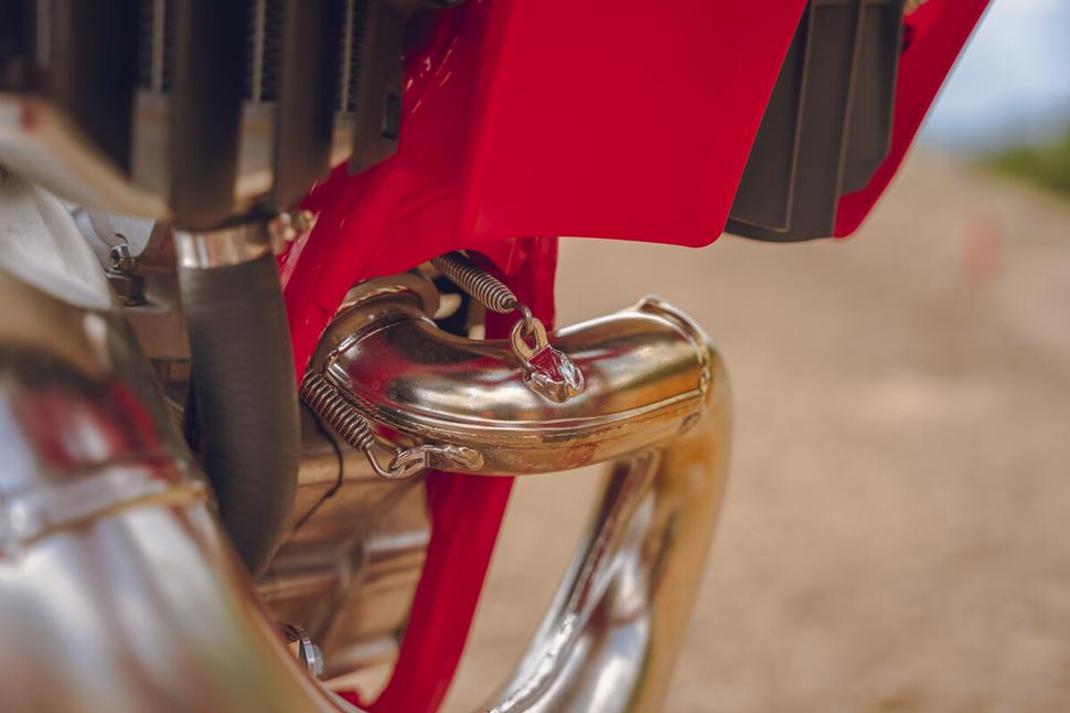 В таких местах MC 250 работает изумительно, и его шасси не только даёт отличный держак, но и остаётся комфортным. Один из аспектов такого комфорта - это то, что мотоциклы GasGas по-прежнему оснащаются коваными алюминиевыми траверсами, а не фрезерованными из болванки, как на аналогах от KTM и Husqvarna.