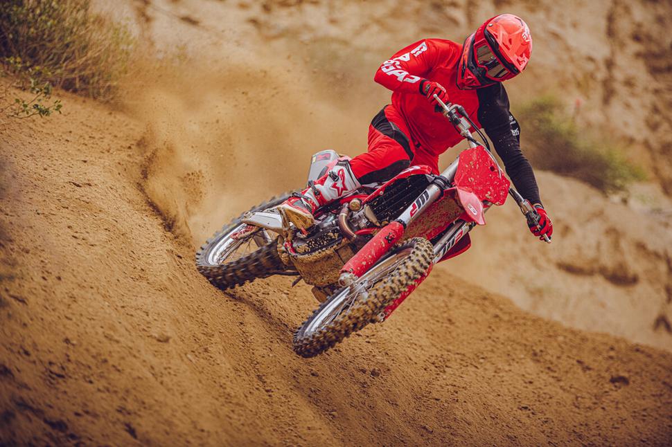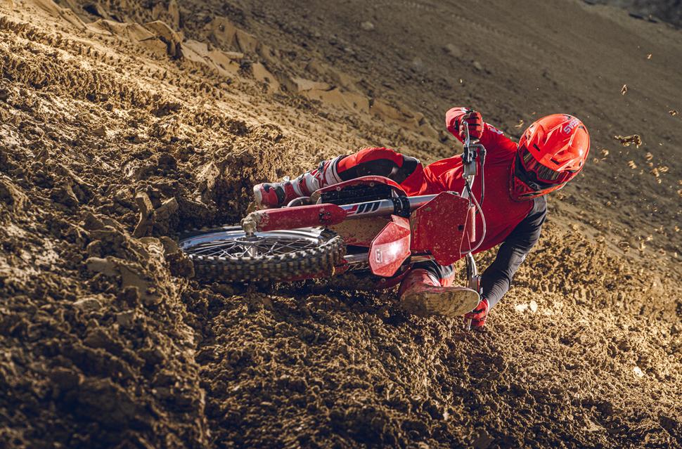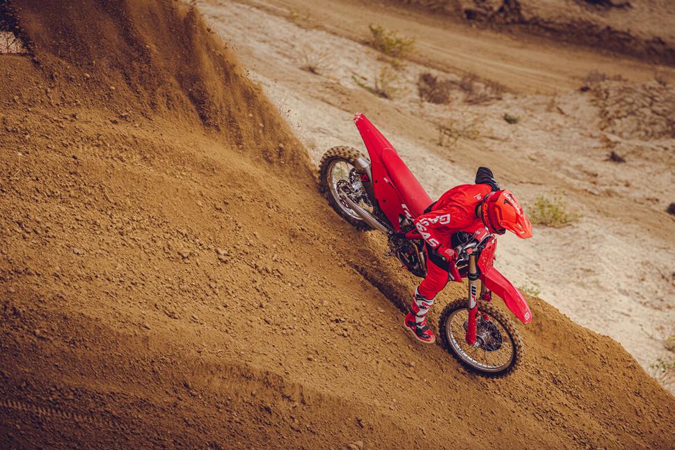 При повороте на GasGas MC 250F, будь то плотный грунт, колеи, плоская поверхность, обычный упор или чаша, в какой-то момент ощущаешь всем телом, как играет шасси - оно будто бы внезапно автоматически наклоняется. К этому ощущению действительно нужно привыкнуть, но такое поведение шасси оказывается на удивление удобным и даёт больше контроля при смене направления. Проще говоря, это один из самых манёвренных четырёхтактных 250-кубовых мотоциклов на современном рынке.