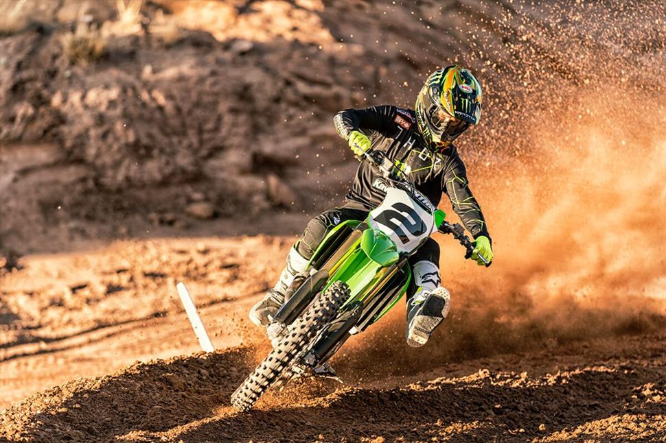 Полностью переработанный с нуля в прошлом году, в 2020 модельном году мотоцикл Kawasaki KX450 выступает в качестве флагманской модели в линейке Kawasaki KX. Четырехтактный двигатель с жидкостным охлаждением объемом 449 куб. см, более тонкая часть алюминиевой рамы по нижнему периметру двигателя, технологичная подвеска Showa A-KIT, гидравлическое сцепление и электрический стартер - идеальная комбинация для победы.