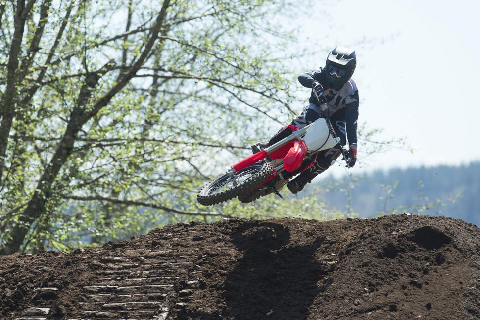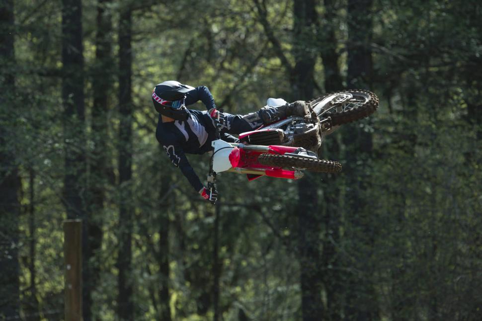 Возможность использовать более высокую передачу на Honda CRF450R важна из-за быстрой реакции мотоцикла на движение ручки газа. Легкое шасси Honda очень чувствительно к положению дроссельной заслонки, положению тела гонщика и настройкам подвески. Можно почувствовать изменения даже после одного щелчка в настройках вилки или амортизатора. Езда на более высокой передаче минимизирует резкое перемещение веса в начале открытия дроссельной заслонки.