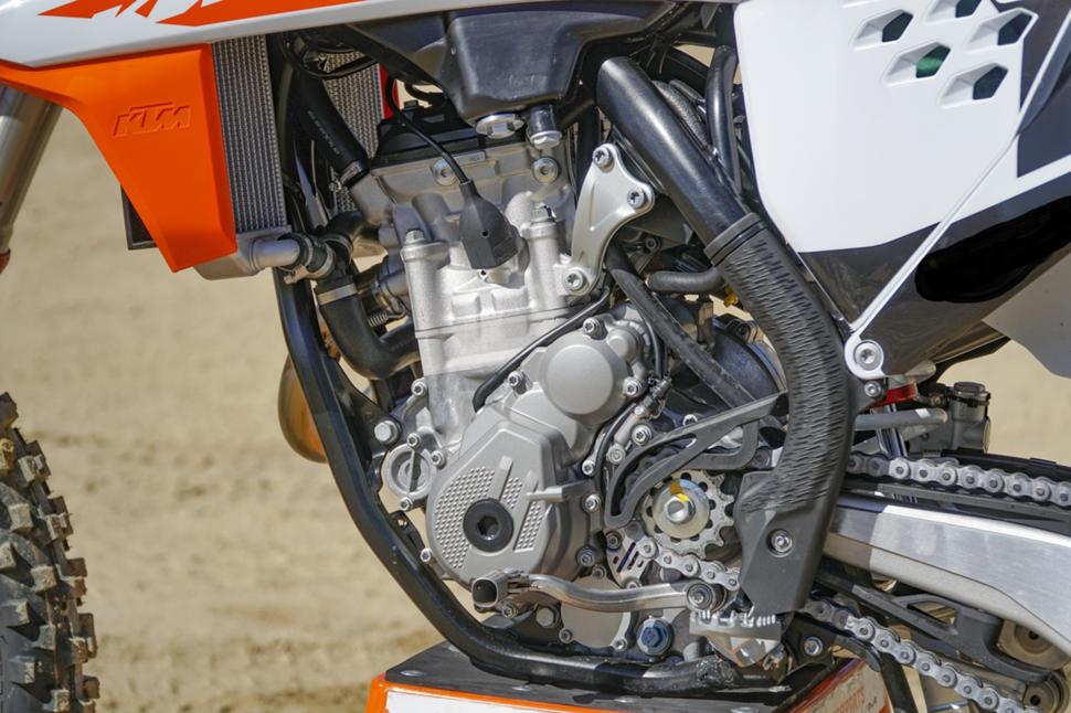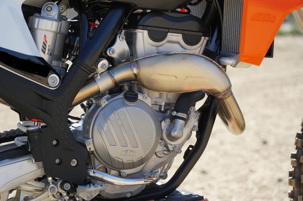 Общий характер мотора такой же, как и у всех KTM 250 SX-F в последние годы. Он имеет ровный, спокойный характер в нижнем диапазоне оборотов, который оживает в середине и продолжает тянуть до ограничителя оборотов. Этот кроссовый мотоцикл действительно вознаграждает агрессивного гонщика, который любит держать дроссель в открытом положении – от середины хода и дальше. Мы обнаружили, что в некоторых рыхлых участках вязких поворотов высокооборотистый двигатель легко теряет тягу, но к этому нужно просто приспособиться.