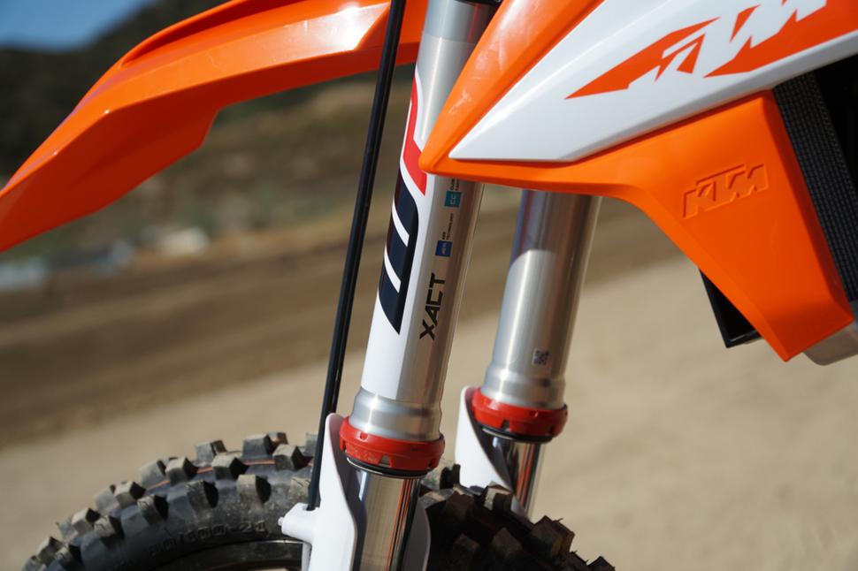 С новыми настройками стало удобнее управлять KTM 250 SX-F. Крутой момент этого шасси в том, что мотоцикл имеет нейтральную поворачиваемость. В то время, как Suzuki и Honda вознаграждают любителей загрузить переднее колесо, а KX любит доворачивать под добавление газа, KTM может делать и то, и другое. 250 SX-F не подстраивается под вас, но вы можете получить много зацепа переднего колеса с переносом вашего веса вперед, или вы можете откинуться назад и повернуть с таким же результатом. Это может порадовать очень широкий круг гонщиков и позволяет поворачивать так, как вы предпочитаете.