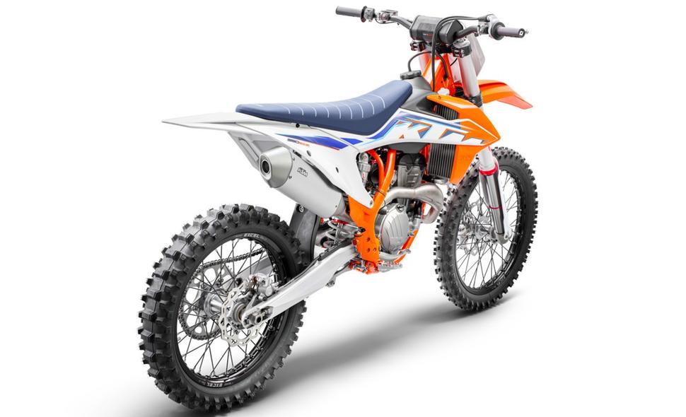 Это на 4,4лс меньше, чем пиковая мощность 450 SX-F и на 9,3лс больше, чем максимум 250 SX-F. Что касается тяги, то 350 SX-F на 11,8Нм слабее 450-ки и 9,2Нм сильнее 250-ки. Вот и получается, что в заводском состоянии KTM 350 SX-F практически идентичен по весу и размерам 250-кубовому собрату, а по мощности стоит значительно ближе к 450-кубовому.